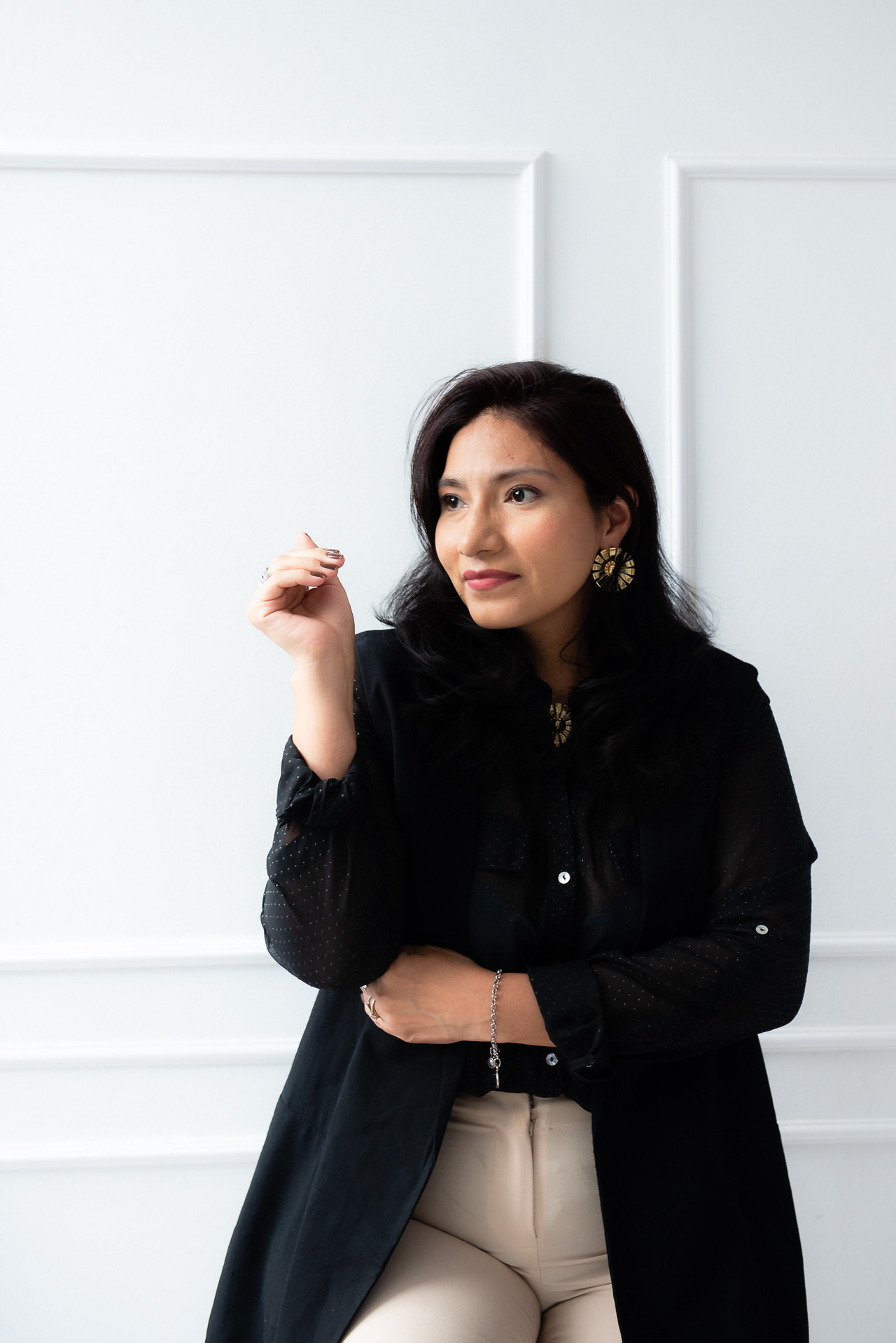 A escolha da lingerie também é um ponto importante no ensaio. Lingeries com bojo ou rendas visíveis podem marcar o corpo e interferir na suavidade da roupa. Isso é especialmente problemático se você estiver usando blusas de tecidos finos, que tendem a mostrar essas marcas. Prefira peças neutras, lisas e sem volume, que não apareçam sob a roupa e garantam um visual mais polido.